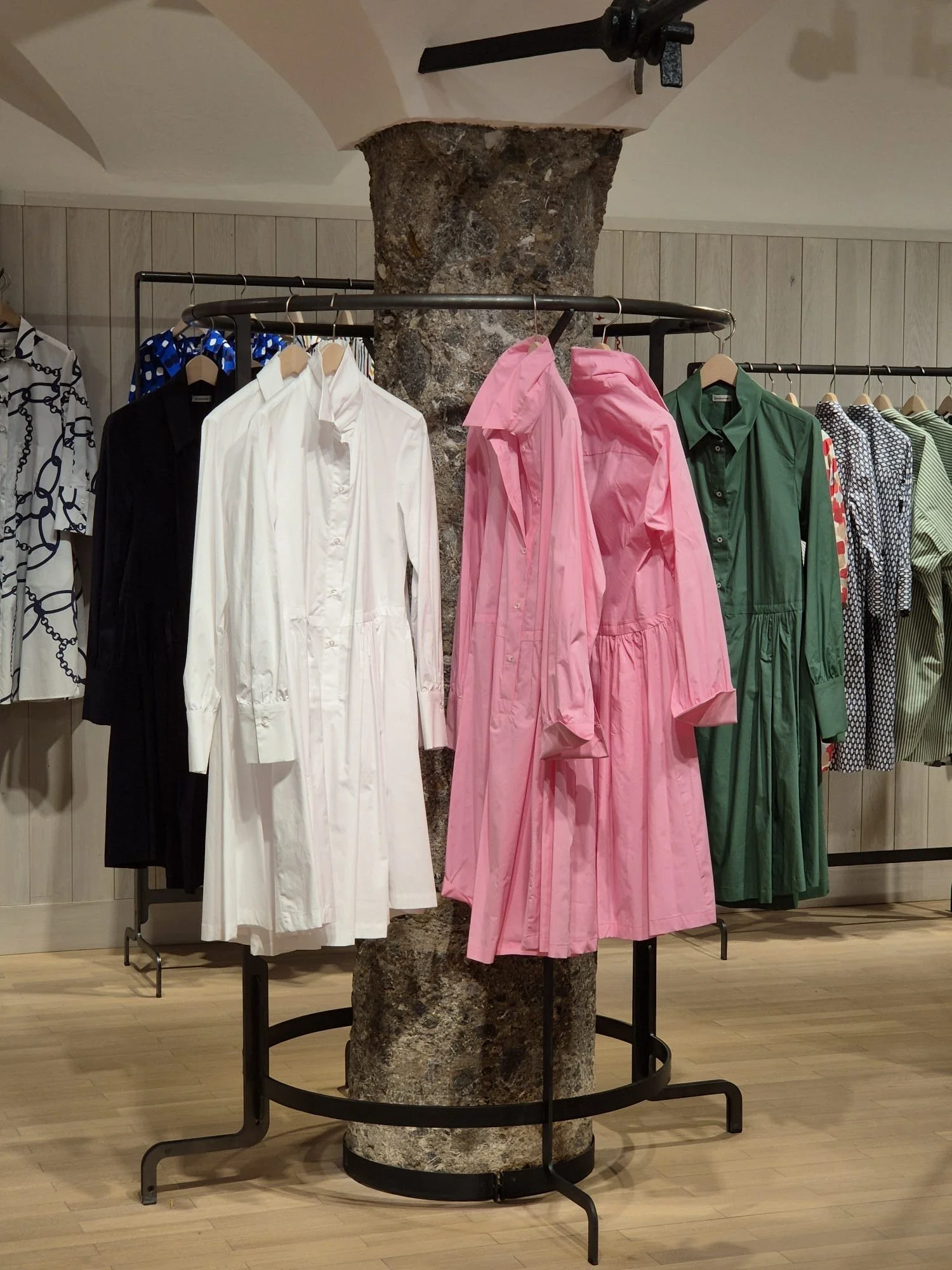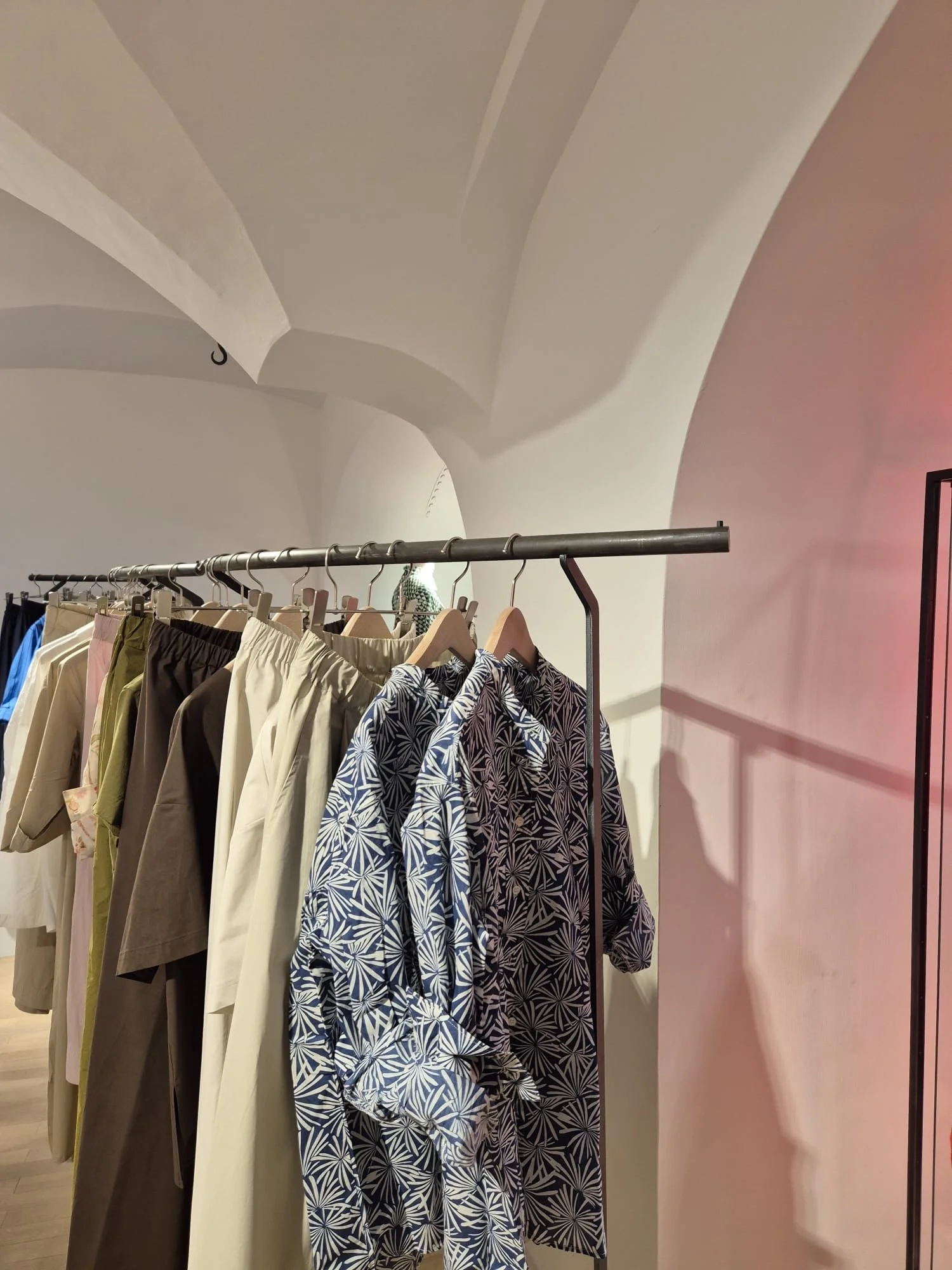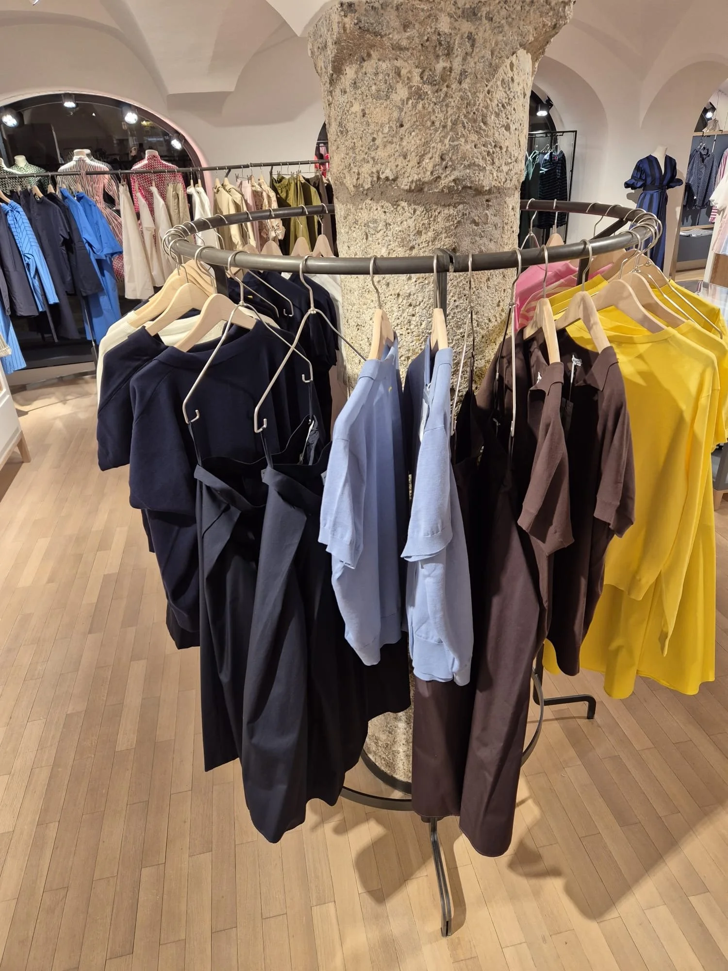 Das Shop Design für Dantendorfer in Tirol nutzt einen Kleiderständer, der aus 8 mm Stahl gefertigt ist. Die Konstruktion basiert auf präziser Laserschnitt-Technologie und akkurat ausgeführtem Gewindeschneiden. Veredelt wird das Element durch ein feines Öl-Finish, welches die materielle Ästhetik des Stahls unterstreicht.